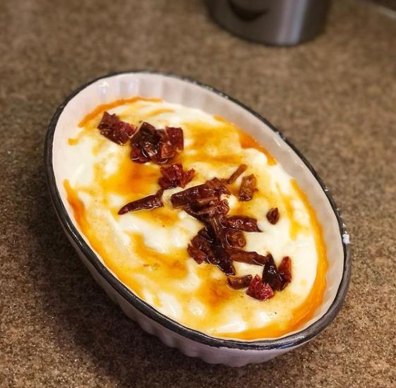 8 adet kuru süs biber;.. Genişçe bir kase içerisine alacağınız süzme yoğurdu, sarımsakları ve tuzu karıştırın.